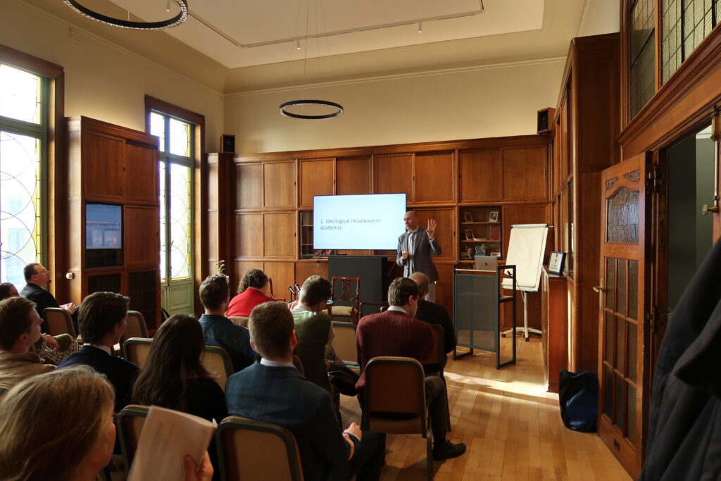 Andreas De Block presented his sociological research into the political and idealistic make-up of academics in the US, UK, and mainland Europe. With the overwhelming majority of those teaching at universities consisting of left-leaning individuals – in particular in the humanities – it is no surprise that teaching programmes reflect this ideological strand. As a result, conservatives in general are less drawn to university careers, with conservative students opting for degrees where this leftwing influence is less noticeable. This in turn lowers the quality of education for students of all backgrounds, for lack of intellectual diversity.