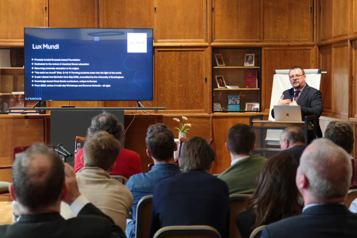 Our President set the stage with a concise overview of the critical state of universities in the West, emphasising how students no longer study, teachers no longer teach, and researchers no longer research. What were once centres of education have been turned into activists’ stages, with the value of degrees having gone down dramatically also because of the marketisation of the university.